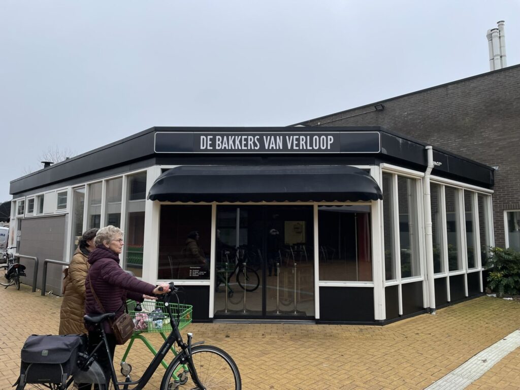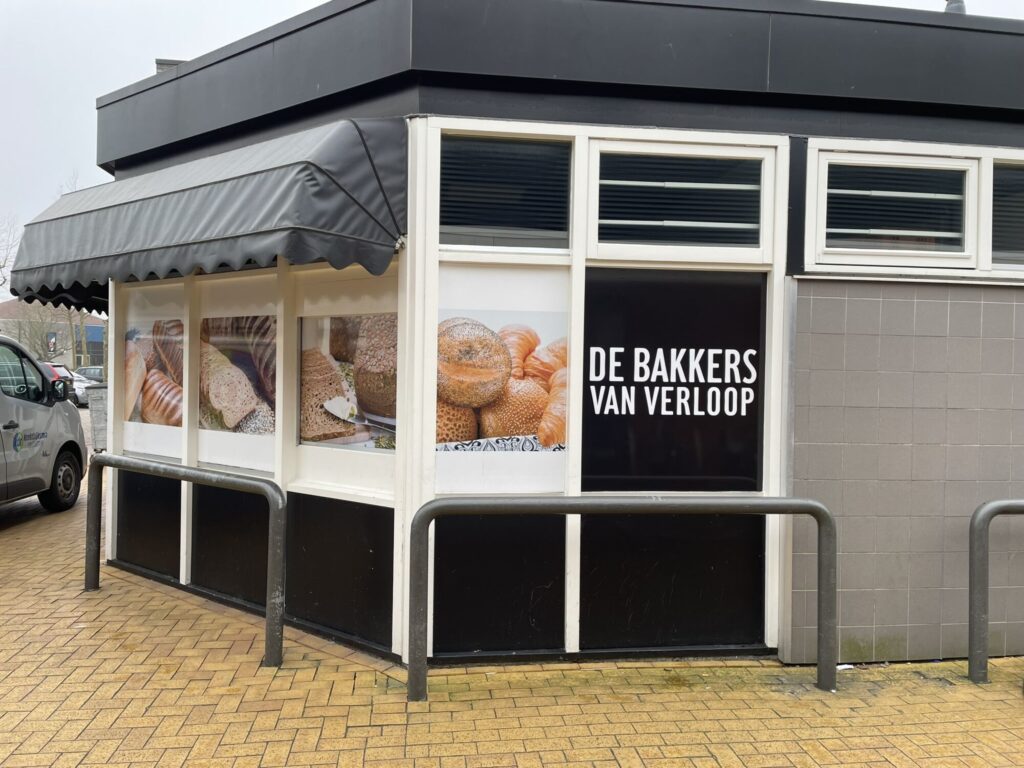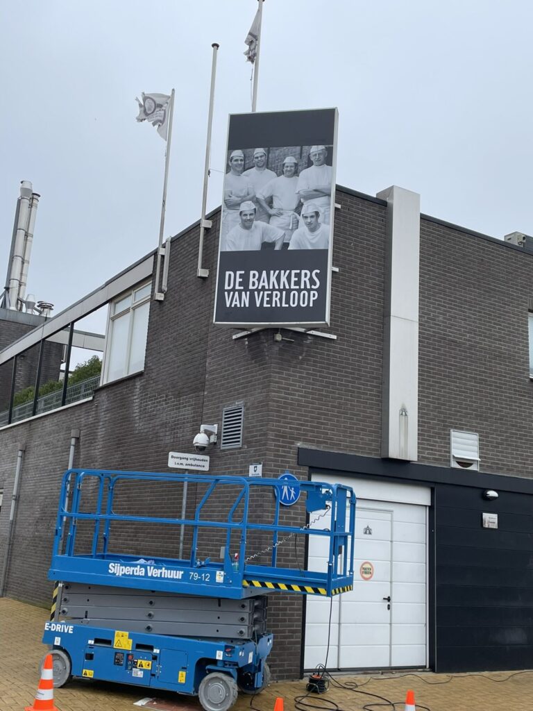 Gesneden koek, deze reclame op de buitenmuren van de Bakkers van Verloop. De koek is nog lang niet op!